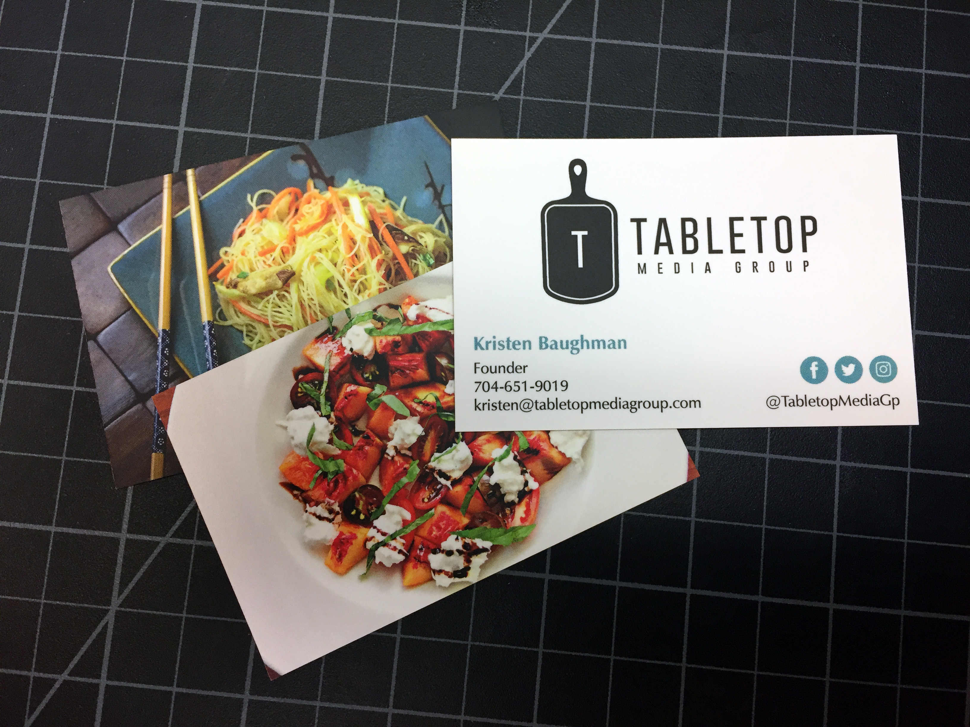 Business cards designed for Kristen at Tabletop Media Group! Printed with Printfinity by Moo, so each card has a different photo on the back.